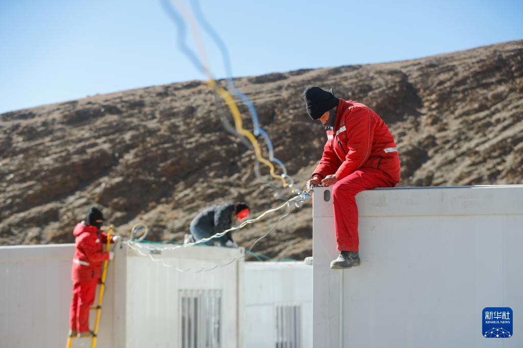 1月10日,在定日县长所乡古荣村,工人在为板房搭设电路。新华社记者 沈伯韩 摄