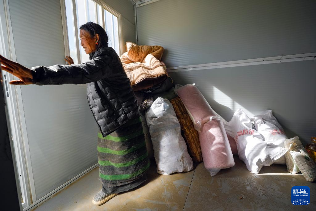 1月10日,在定日县长所乡古荣村,受灾群众搬入板房。新华社记者 晋美多吉 摄