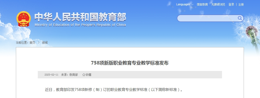记者2月11日从教育部获悉,教育部近日印发758项新修(制)订的职业教育专业教学标准,覆盖《职业教育专业目录》1434个专业的52.9%,涉及19个专业大类、90个专业类。其中,中职标准223项,高职专科标准471项,职业本科标准64项。