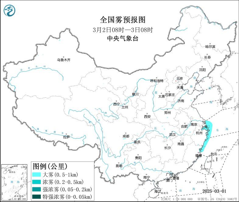 预计,3月2日白天至夜间,长江口及杭州湾附近海域、舟山群岛附近海域、浙江沿岸海域、上海港、宁波港将有能见度不足1公里的浓雾。