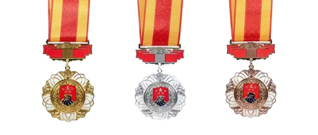 图为戍守边疆金质、银质、铜质纪念章。(国家移民管理局供图)