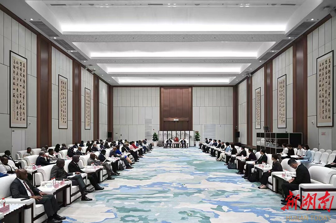 沈晓明代表省委、省政府对代表团一行表示欢迎,并简要介绍了湖南省情。他说,习近平主席高度重视中非关系发展,将中非关系整体定位提升到新时代全天候中非命运共同体的战略高度。湖南与非洲虽然相隔万里,但友好往来源远流长。近年来,随着中非经贸博览会、中非经贸深度合作先行区等国家级平台落户湖南,湖南与非洲国家的交流合作更加频繁深入,正在成为中国对非经贸合作的重要“桥头堡”。希望大家通过此次考察更多了解湖南,积极推动所在国家与地区深化与湖南的交流合作,更好实现互利共赢。