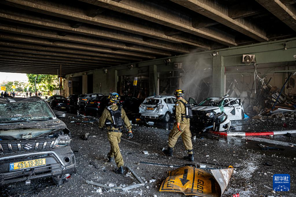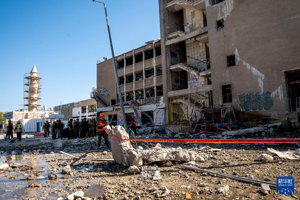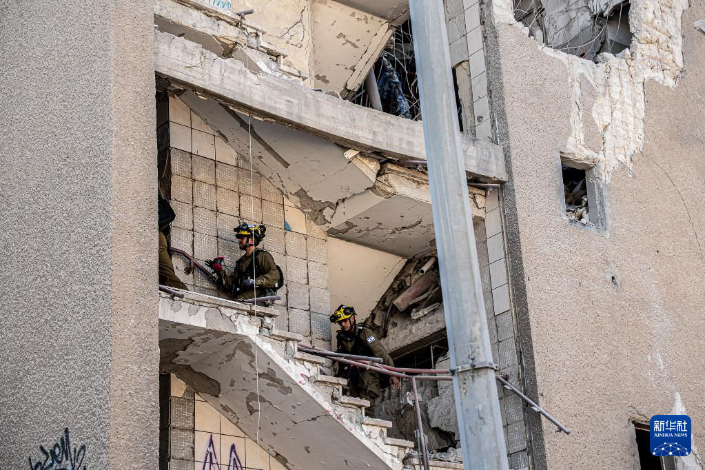 6月20日,安全和救援人员在以色列北部海法的导弹袭击现场工作。新华社/基尼图片社