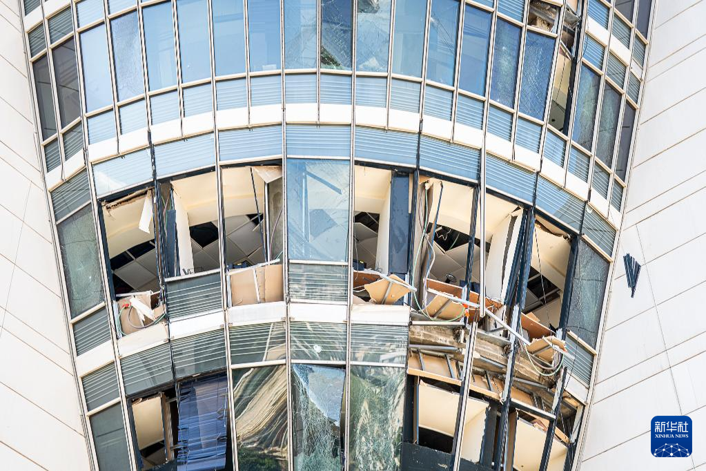 这是6月20日在以色列北部海法拍摄的在导弹袭击中受损的建筑。新华社/基尼图片社