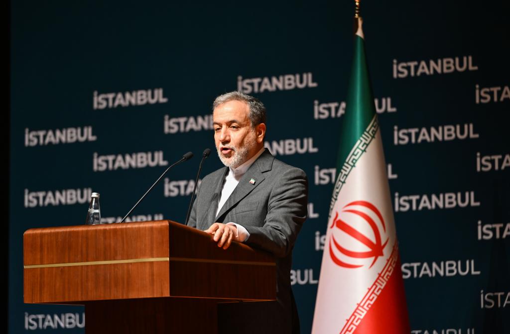 6月22日,伊朗外交部长阿拉格齐在土耳其伊斯坦布尔举行的新闻发布会上发言。新华社记者刘磊摄