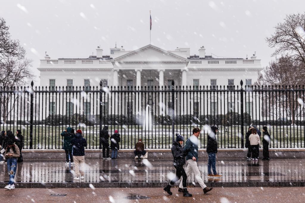 这是2024年1月15日在美国首都华盛顿拍摄的雪中的白宫。新华社发(阿伦摄)