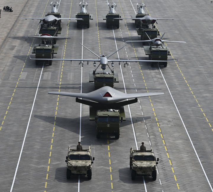 ↑9月3日,纪念中国人民抗日战争暨世界反法西斯战争胜利80周年大会在北京隆重举行。这是空中无人作战方队接受检阅。新华社记者 张铖 摄