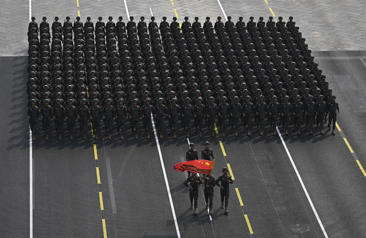 ↑9月3日,纪念中国人民抗日战争暨世界反法西斯战争胜利80周年大会在北京隆重举行。这是徒步方队接受检阅。新华社记者 孙非 摄