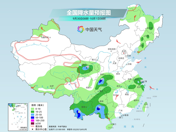 明天,西北地区东南部、江淮、江汉、西南地区东部和南部、华南西部和南部等地部分地区有中到大雨,其中,陕西南部、湖北西部、四川盆地北部、云南东南部、广西西部、海南岛南部等地部分地区有暴雨或大暴雨。