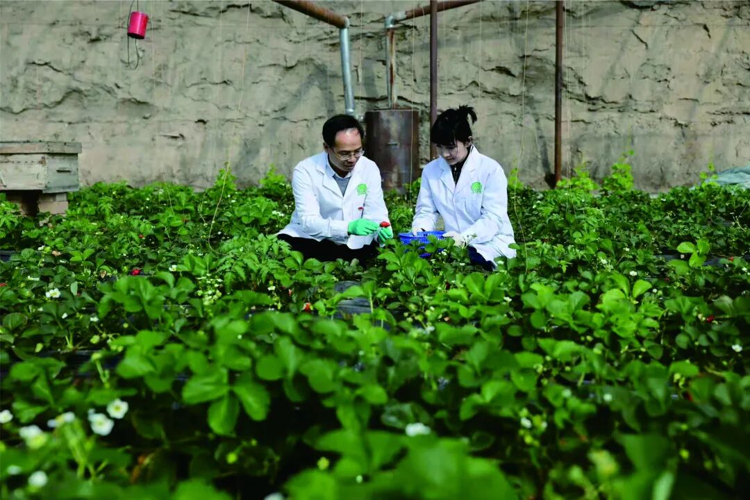 吐鲁番市高昌区亚尔镇塔克托维村,湖南省农产品检验检测柔性援疆“小组团”专家隆雪明(左)正在指导同事在草莓种植基地抽样。王立三摄