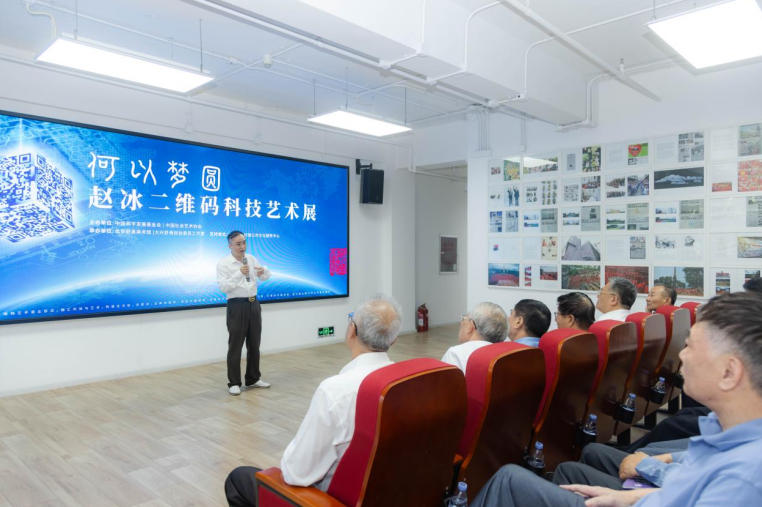 展览创作者、国务院参事室原党组成员、副主任赵冰分享了创作体会。他指出,党的十八大以来,习近平总书记围绕文化强国建设和高水平科技自立自强发表了一系列重要论述,为新时代推动文化和科技融合发展提供了根本遵循。聚焦“弘扬主旋律,传播正能量”的主题,探索性地将二维码作为艺术语言形式进行创作,主要考虑到其兼具技术工具属性与文化符号意义,而且是全球通用的技术“世界语”,不仅赋予艺术创作无限可能,更有助于不断提升中华文化传播力和中华文明影响力。