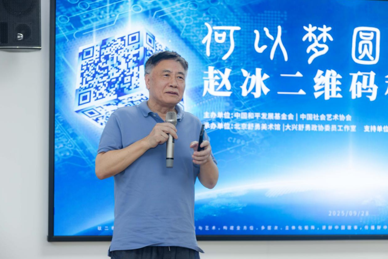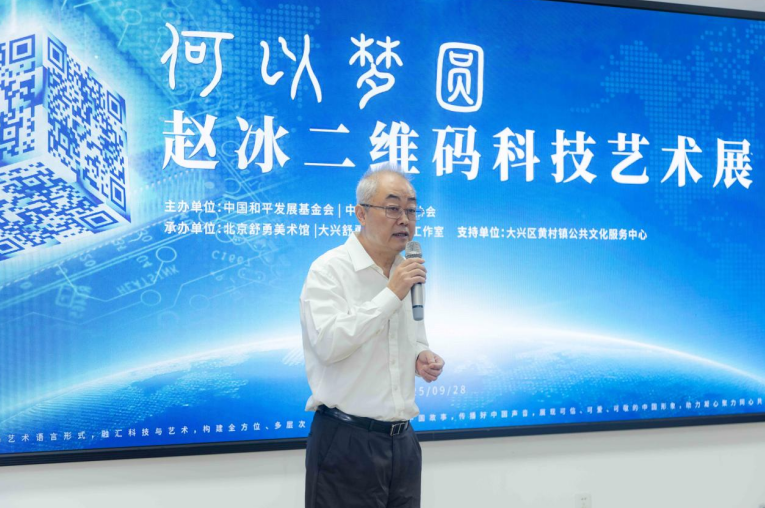 9月28日下午,为庆祝中华人民共和国成立76周年,深入学习贯彻习近平总书记关于文化和科技融合发展的重要论述精神,推动“艺术+科技”创新实践落地,由中国和平发展基金会、中国社会艺术协会主办,北京舒勇美术馆承办的“何以梦圆——赵冰二维码科技艺术展”开幕式在北京舒勇美术馆隆重举行。