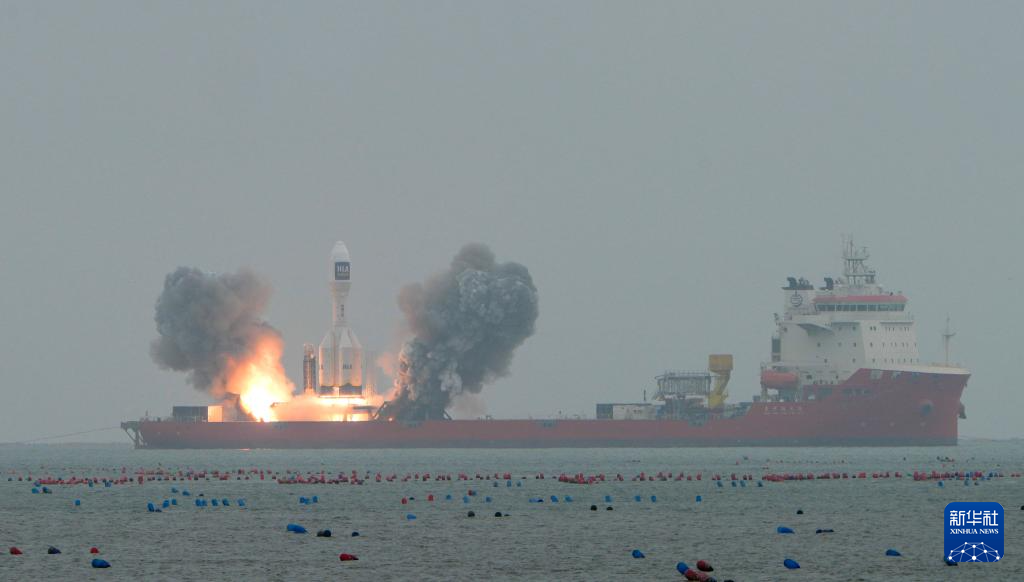 10月11日10时20分,我国太原卫星发射中心在山东海阳附近海域使用引力一号遥二运载火箭,将搭载的吉林一号宽幅02B07星、数天宇星01-02试验星顺利送入预定轨道,飞行试验任务获得圆满成功。 新华社发(郭金祺 摄)