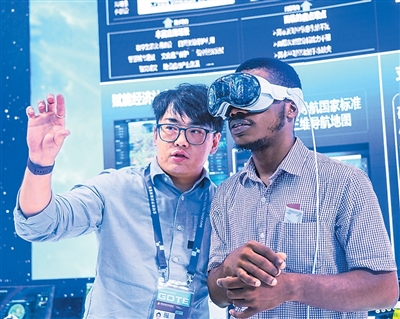 在浙江杭州举行的第四届全球数字贸易博览会上,外商进行低空经济MR交互体验。章勇涛摄(人民视觉)