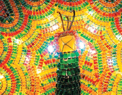 四川自贡是中国首批十三个国家文化出口基地之一。图为当地制作的彩灯“孔雀开屏”。新华社记者 张笑宇摄