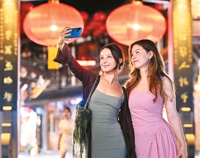 重庆市沙坪坝区磁器口古镇,来自俄罗斯的游客正在游玩。孙凯芳摄(人民视觉)