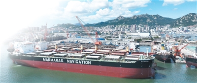 山东省荣成市石岛管理区修造船基地,船坞内外停满了海内外各类大型船舶。王福东摄(人民视觉)