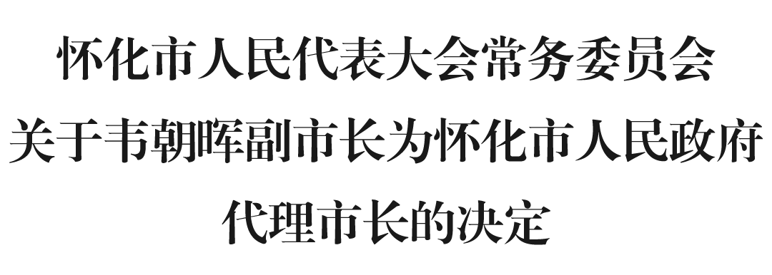 怀化市第六届人民代表大会常务委员会第二十六次会议决定:韦朝晖副市长为怀化市人民政府代理市长。