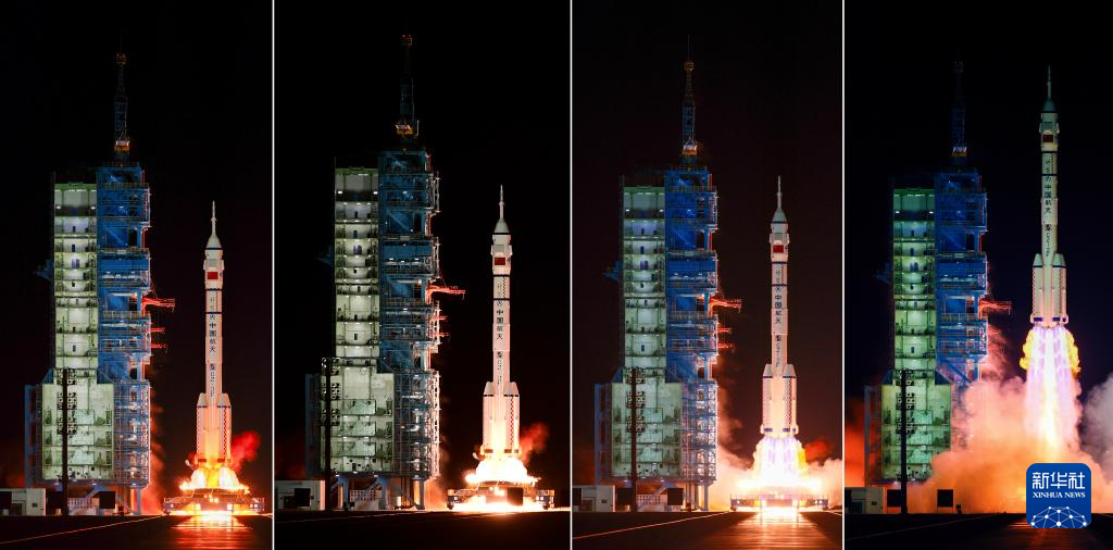 10月31日23时44分,搭载神舟二十一号载人飞船的长征二号F遥二十一运载火箭在酒泉卫星发射中心点火发射,约10分钟后,飞船与火箭成功分离,进入预定轨道,航天员乘组状态良好,发射取得圆满成功。新华社发(汪江波 摄)