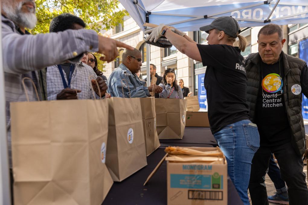 11月5日,在美国首都华盛顿,联邦雇员排队领取免费食物。新华社记者胡友松摄