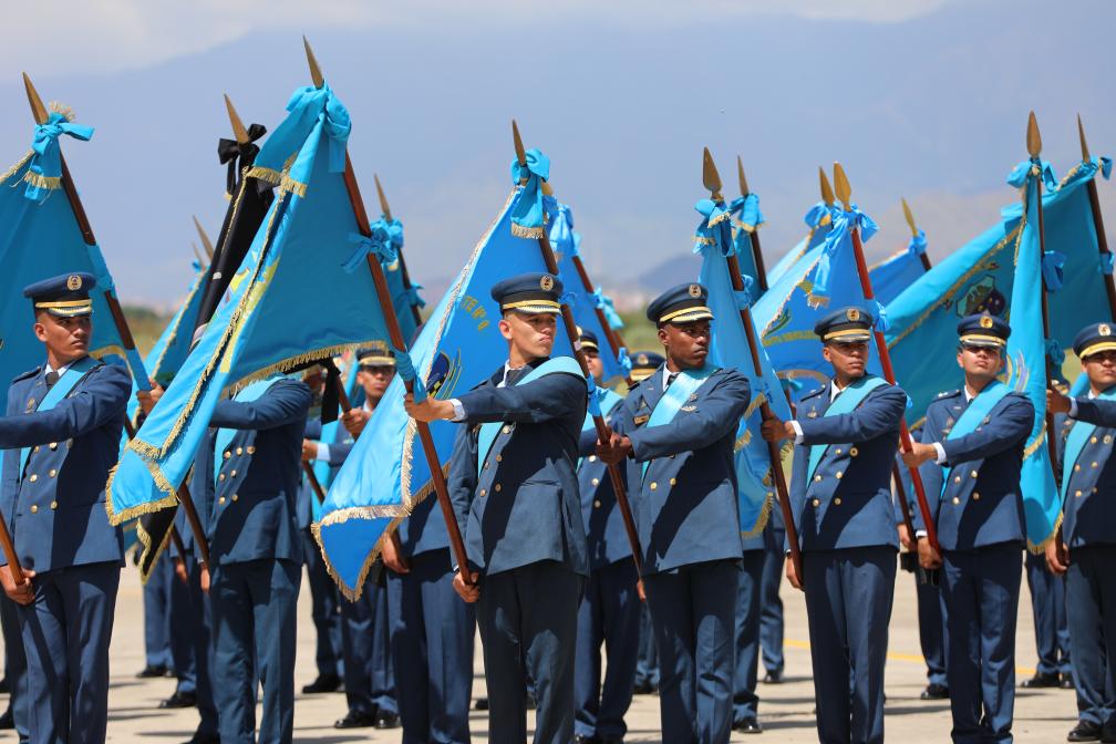 11月27日,在委内瑞拉马拉凯市的解放者空军基地,空军部队军人列队参加空军成立105周年纪念活动。新华社发(委内瑞拉国防部供图)