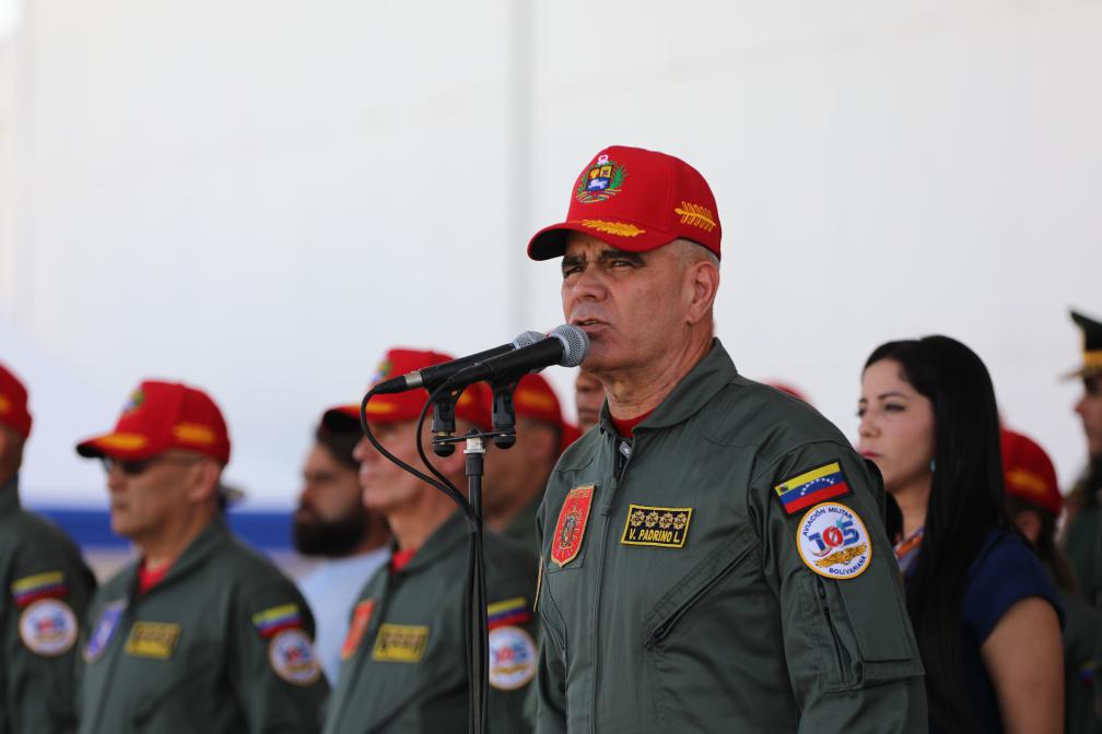 11月27日,在委内瑞拉马拉凯市的解放者空军基地,委内瑞拉国防部长洛佩斯在空军成立105周年纪念活动上发表讲话。新华社发(委内瑞拉国防部供图)