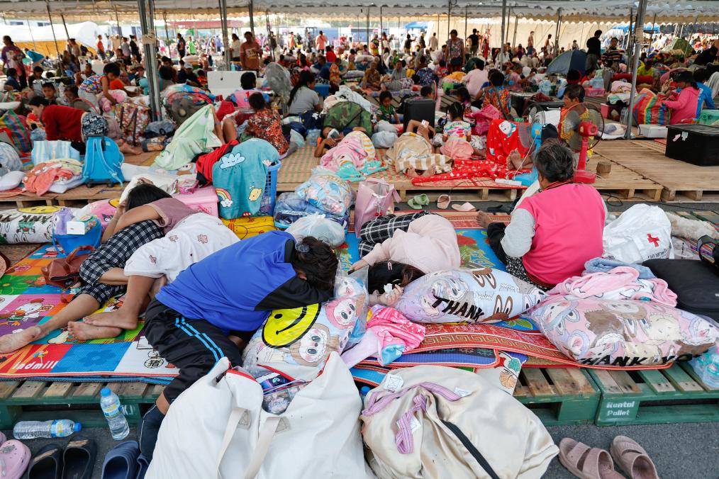 12月8日,在泰国武里南府,撤离边境省份的民众在一处避难所休息。新华社发