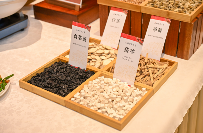 湖南宾馆汉方菜系列的打造,严格恪守汉代“食医结合”“不时不食”的饮食哲学,以马王堆汉墓出土的食材清单与食方记载为蓝本,巧妙融合现代营养学标准与当代餐饮审美创意。自助餐台上,鹌鹑蛋米酒、稻米粉蒸糕等小雪宴经典菜品焕新登场,勾起食客舌尖记忆;汉方萝卜煨手工鱼丸、汉方大头菜炖腌肉等特色佳肴香气氤氲,令人垂涎;汉方酱汁鹅、腌肉煨青笋等菜品,则在鲜香醇厚的风味中融入养生功效。现场还陈列着各类中药食材,直观诠释汉方菜“药食同源”的核心精髓。