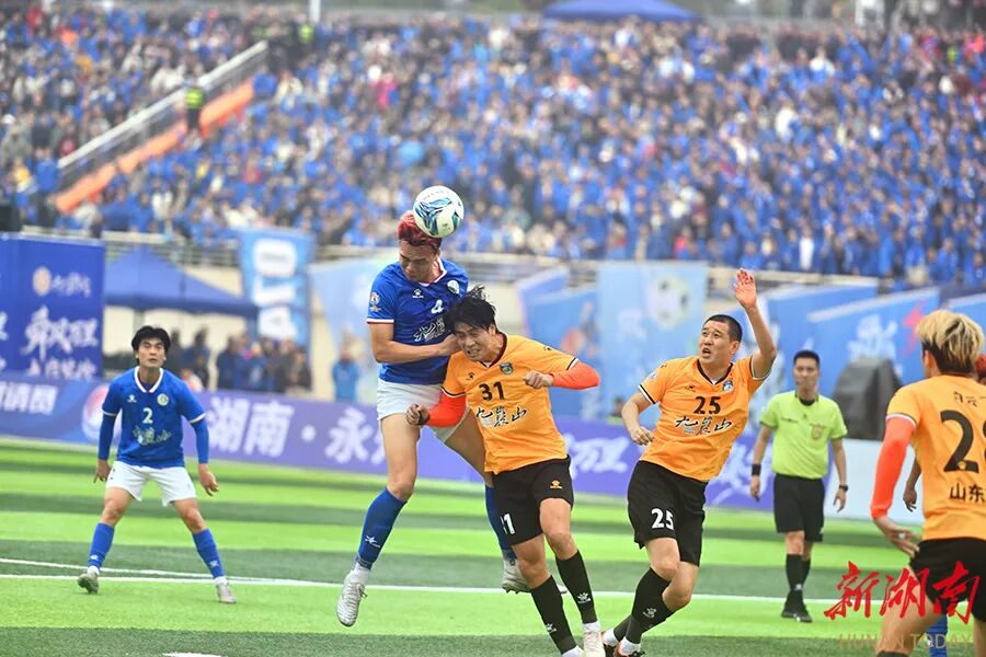 第3分钟,泰安队28号白云飞打进第一粒球;第7分钟,永州队7号林昊用一脚世界波将比分扳平。