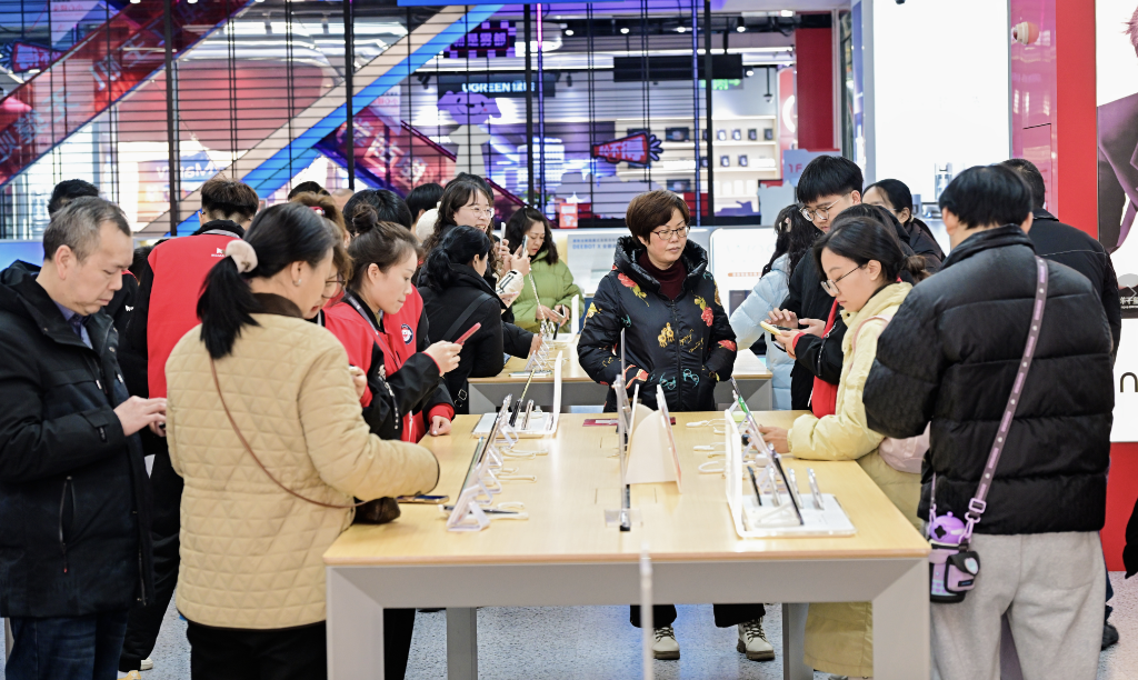 2026年“新国补”落地,消费者在重庆京东MALL选购手机。(受访者供图)
