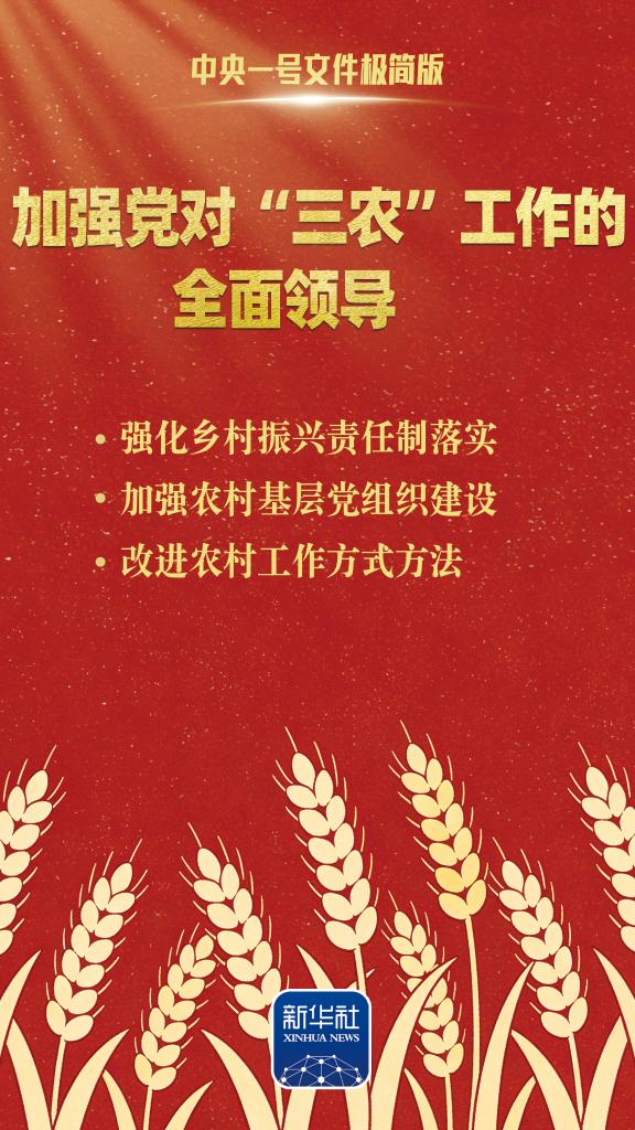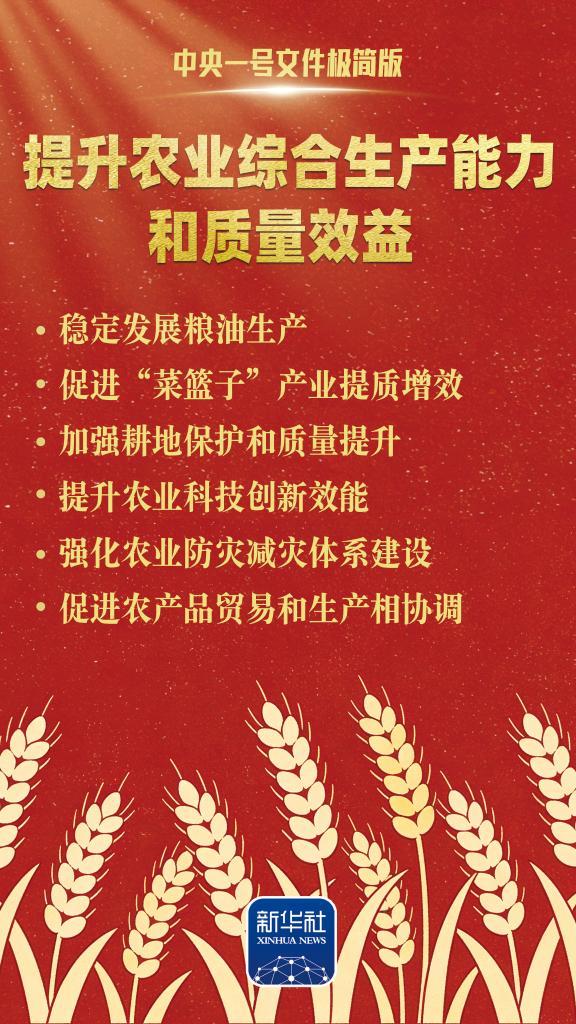 2026年中央一号文件2月3日发布,这是“十五五”首个中央一号文件。这份名为《中共中央 国务院关于锚定农业农村现代化 扎实推进乡村全面振兴的意见》的中央一号文件,对今年“三农”工作做了六个方面的重点部署。跟随我们整理的这份极简版海报,一起学习。