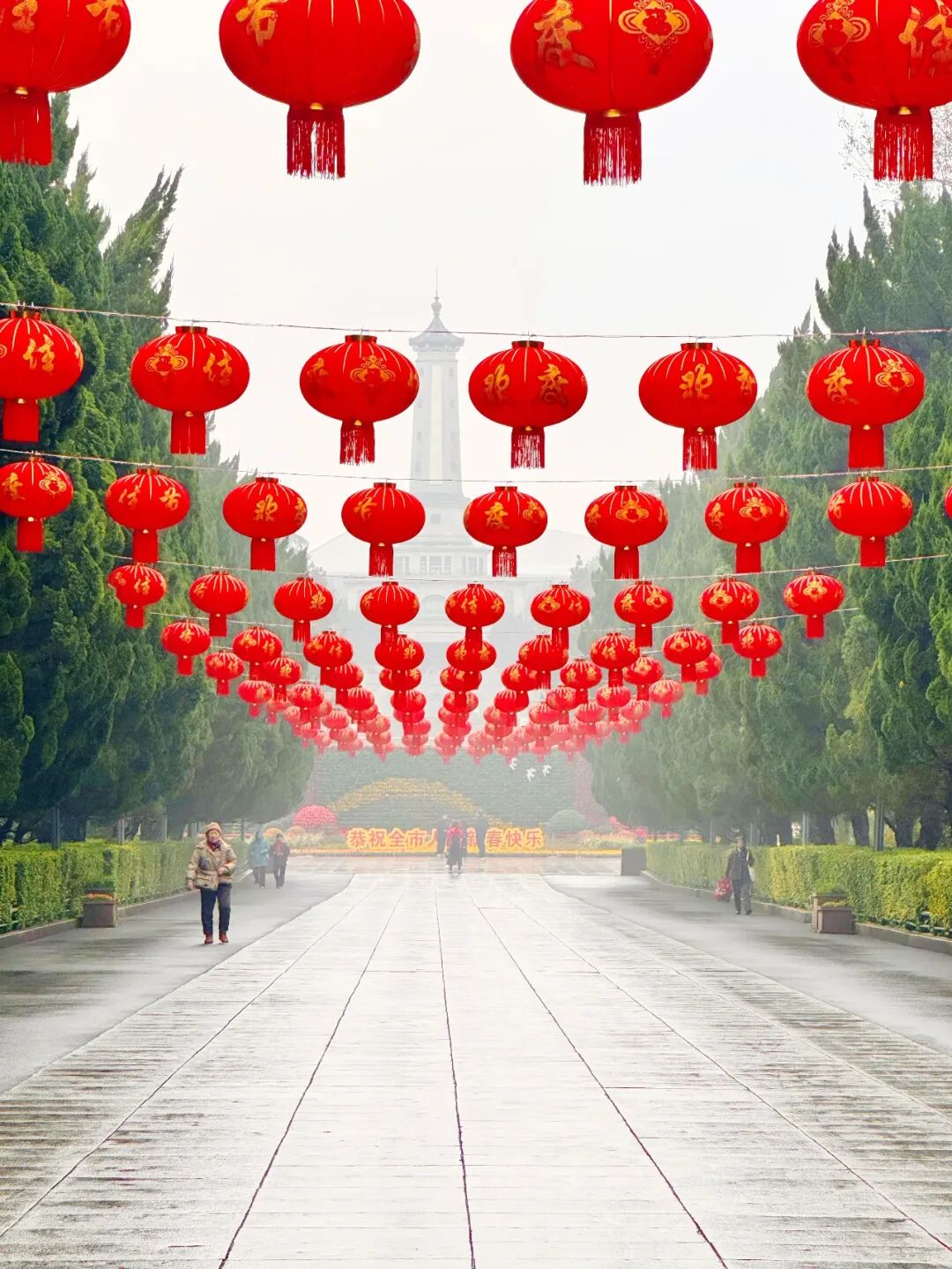公园里,绿雕、灯笼等传统元素与苍翠树木、湖光亭廊相映成趣,满园的“中国红”营造出欢乐祥和的氛围,为城市“绿色客厅”披上节日红妆,为市民送上新春祝福。