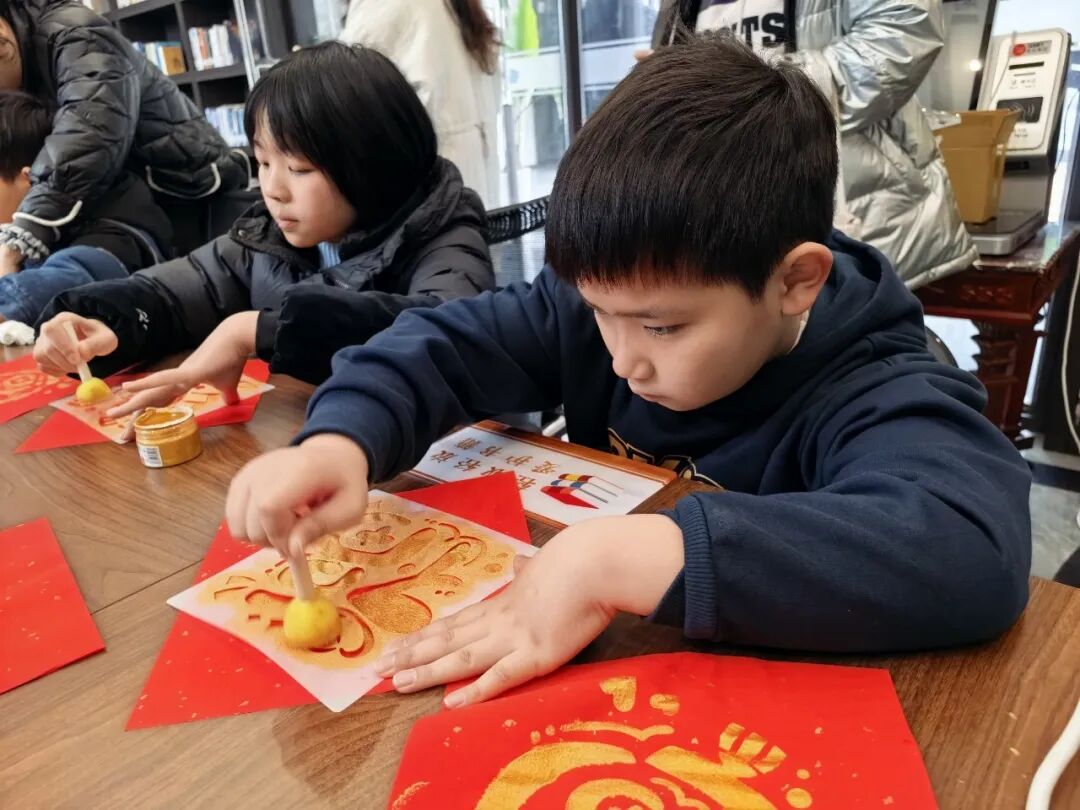 2月7日,“我们的节日——春节”主题手工活动以非遗拓印技艺开篇,亲子家庭在红金拓印中体验年俗趣味。