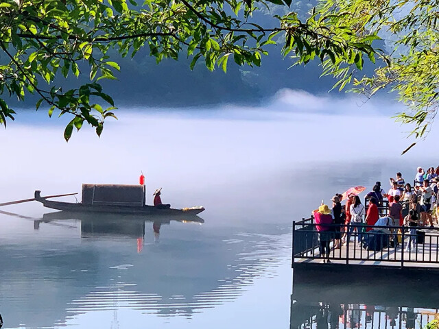 (7月22日,资兴市小东江景区内,两岸峰峦叠翠,湖面水汽蒸腾,云雾缭绕,吸引了省内外游客前来赏景避暑。 湖南日报记者 徐行 摄)