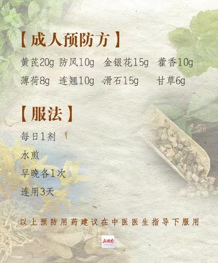 湖南日报·新湖南客户端8月4日讯(记者 王铭俊 通讯员 王颖异 罗慧婷)当前,我省多地出现新冠肺炎本土确诊病例。为充分发挥中医药在新冠肺炎防控中的作用,针对本轮疫情,湖南省中医药管理局组织国医大师熊继柏等中医药专家研究制订了新冠肺炎疫情防控中药预防方,今天向社会发布。