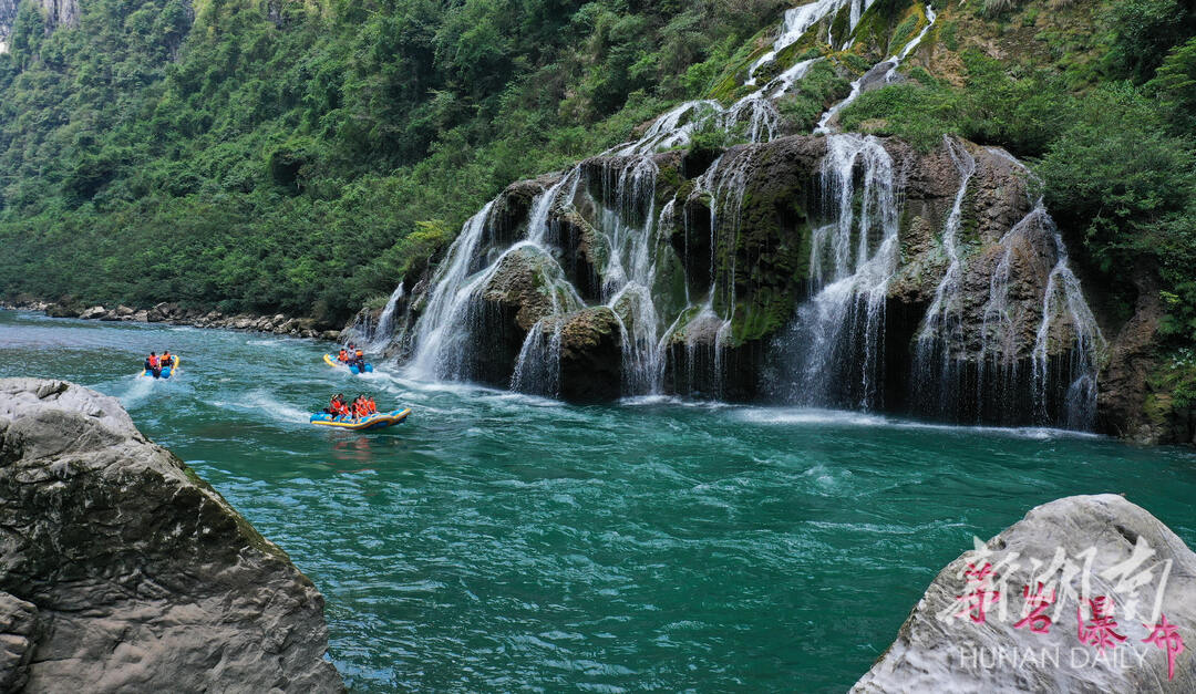 (游人在张家界茅岩河景区体验漂流。吴勇兵 摄)