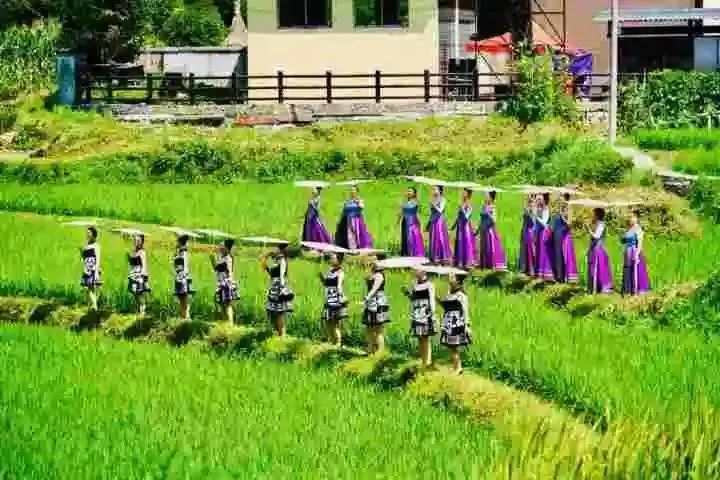 张家界武陵源的梯田成为当地少数民族的表演场 高慧 摄