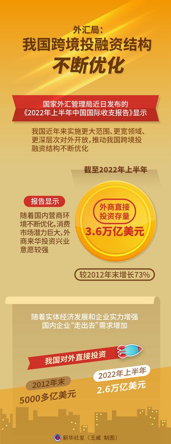 1.国家外汇管理局发布《2022年上半年中国国际收支报告》:我国近年来实施更大范围、更宽领域、更深层次对外开放,推动我国跨境投融资结构不断优化。详情