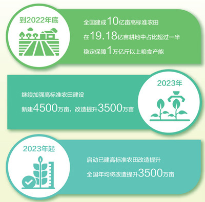 从2023年起,全国年均将改造提升3500万亩高标准农田
