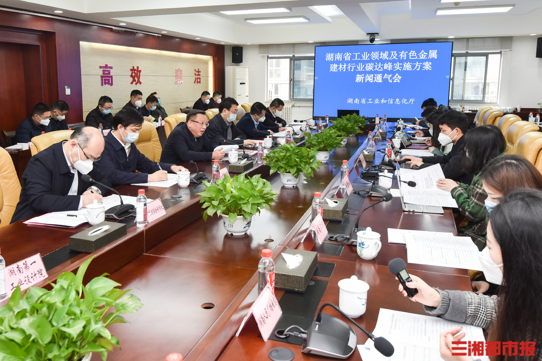 1月12日,记者从省工信厅召开的工业领域及有色金属、建材行业碳达峰实施方案新闻通气会上获悉,到2025年,湖南规模以上工业单位增加值能耗较2020年下降14.0%,重点行业二氧化碳排放强度明显下降,确保工业领域二氧化碳排放在2030年前达峰。到2025年,我省新增创建省级及以上绿色工厂500家以上。