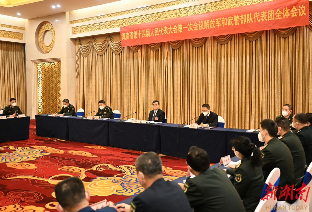16日下午,省委书记、省人大常委会主任、省军区党委第一书记张庆伟来到省十四届人大一次会议解放军和武警部队代表团,与代表们一同审议省人大常委会工作报告、省高级人民法院工作报告和省人民检察院工作报告。他强调,驻湘解放军和武警部队要深入学习宣传贯彻党的二十大精神,认真贯彻习近平强军思想,坚持政治建军、改革强军、科技强军、人才强军、依法治军,为如期实现建军一百年奋斗目标作出积极贡献。
