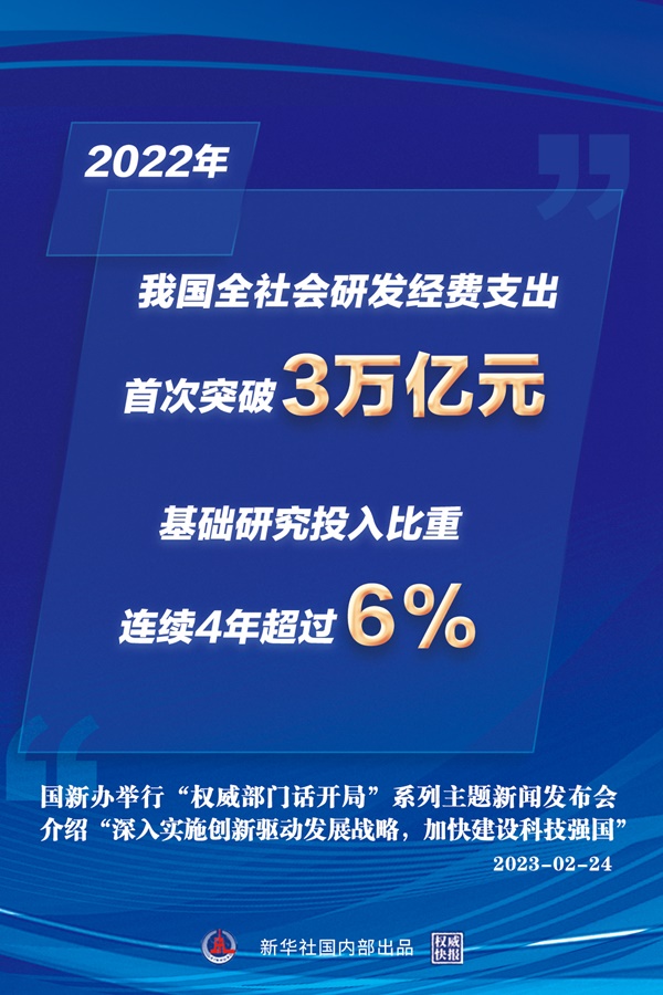 3.2022年我国全社会研发经费支出首次突破3万亿元。详情
