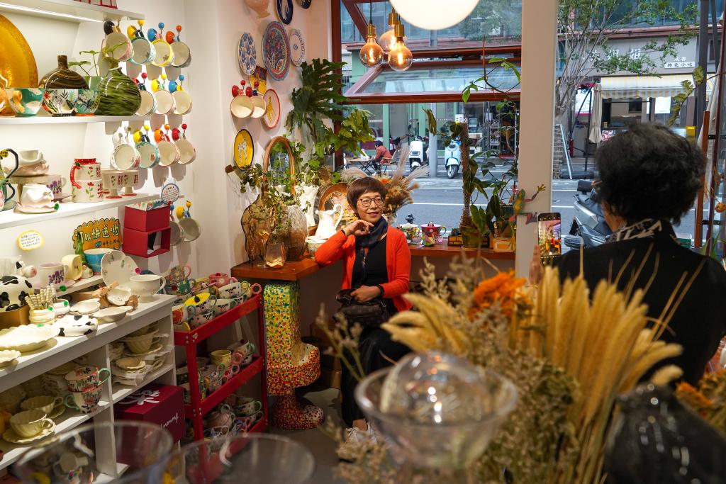 2023年10月11日,顾客在成都市武侯区玉林东路的瓷器特色小店拍照打卡。新华社记者 唐文豪 摄