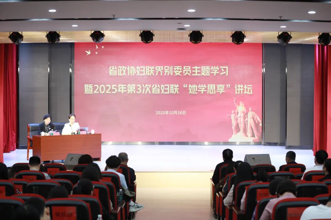 今天(10月16日)上午,省政协社法委、省妇联联合举办省政协妇联界别委员主题学习暨2025年第3次省妇联“她学思享”讲坛。省政协副主席潘碧灵出席。