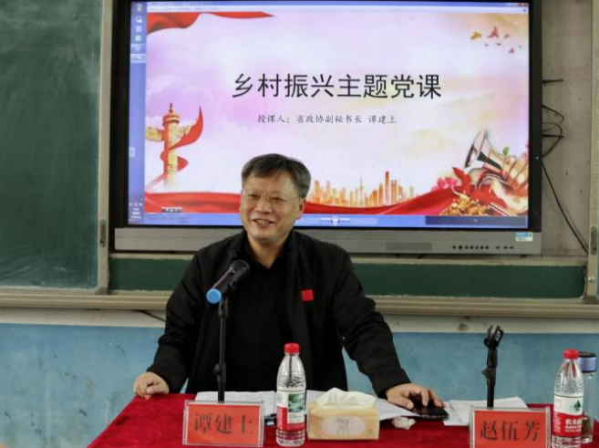 深秋时节,寒意渐浓,但新化县吉庆镇坪塘村胜利完小的教室内却暖意融融、气氛热烈。10月29日,来自省政协办公厅人事处党支部、行管办党支部和坪塘村党总支的全体党员,吉庆镇部分干部和各村党总支书记以及坪塘村驻村工作队齐聚一堂,共同聆听省政协副秘书长谭建上讲授“学思悟践四中全会精神 持续提升乡村振兴工作”专题党课。