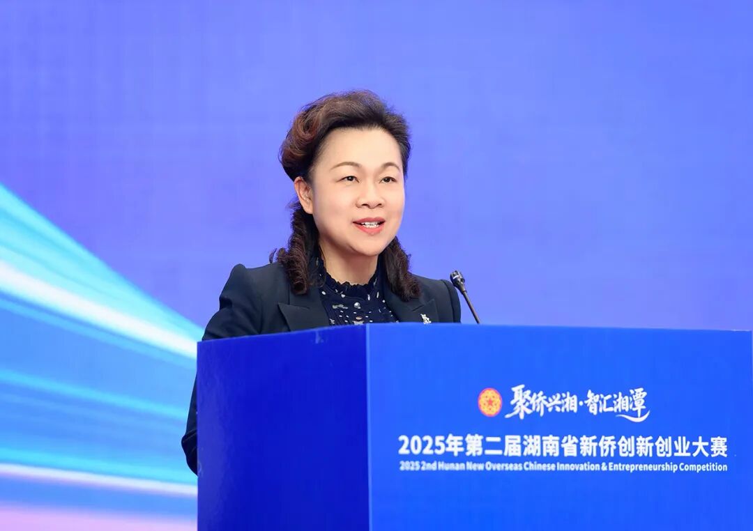 肖百灵对汇聚湖湘的侨界青年才俊表示诚挚欢迎,向获奖项目和团队表示祝贺,向长期关心支持湖南侨务事业与创新创业发展的各界人士表示感谢。她寄语侨界青年,要胸怀“国之大者”,锚定理想罗盘,与国家同频共振;高举创新火炬,与湖湘同向发力;充分发挥桥梁作用,当好产业发展“战斗员”、对外开放“宣传员”、联通中外“联络员”,让更多“湖南创造”“湖南智造”走出湖南、走向全球。