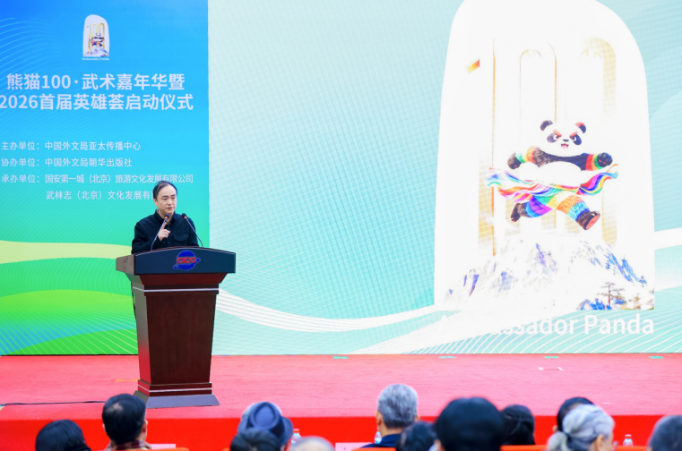中国外文局亚太传播中心总编辑赵珺在致辞中表示:“‘十五五’规划建议明确提出“文化繁荣兴盛是中国式现代化的重要标志”。中国外文局亚太传播中心发起举办“熊猫100·武术嘉年华暨2026首届英雄荟”活动,创新融合熊猫与武术两大文化标识,旨在搭建一个集体育竞技、文化展示、产业合作与国际交流于一体的综合性平台,希望能够实现三大愿景:一是以武术为桥,弘扬中华优秀文化,彰显人类共同价值;二是以熊猫为媒,构建国际交流新平台,增进理解与认同;三是以内容为根,打造武术传播新生态,拓展影响边界,推动武术文化国际传播迈入新阶段。