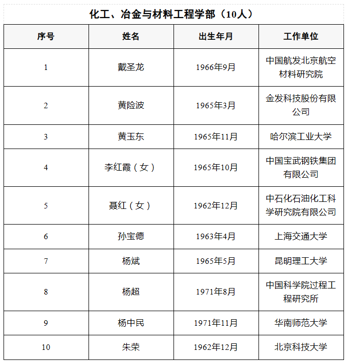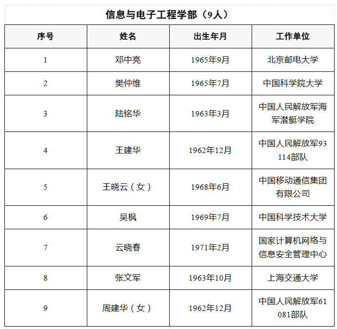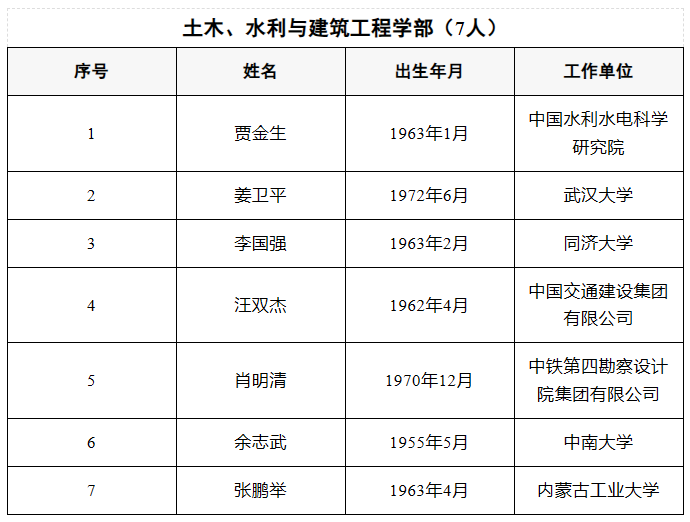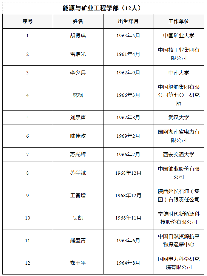 2025年当选中国工程院院士名单