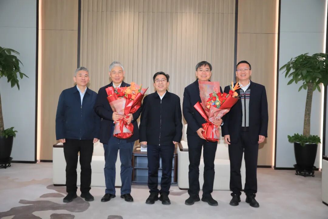 赖明勇向冯江华当选院士表示祝贺,并与两位专家亲切交流,详细询问他们的工作、生活情况及科研进展等,听取他们对湖南科技人才培养、产业发展等方面的意见建议。