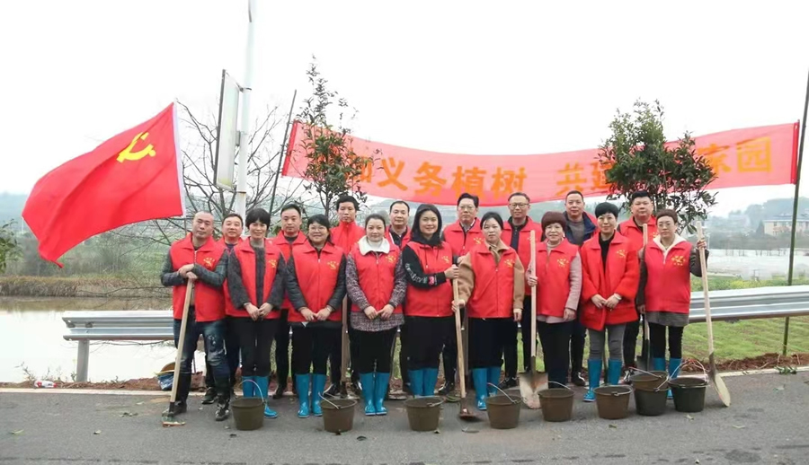 一到现场,大家便忙开了,两人一组,扶苗、培土、踩实、浇水,合力栽下一棵棵树苗,一片热火朝天的劳动场景,以实际行动为家园增添一片新绿,为生态文明建设贡献一份力量。